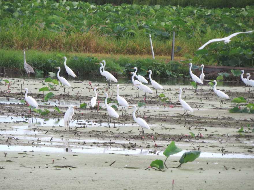 泳いでいる光景を目撃しました。また、ダイサギ、チュウサギ、コサギ、アマサギ、