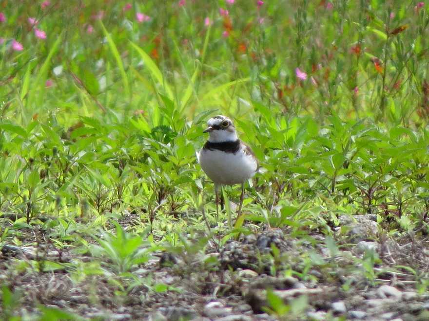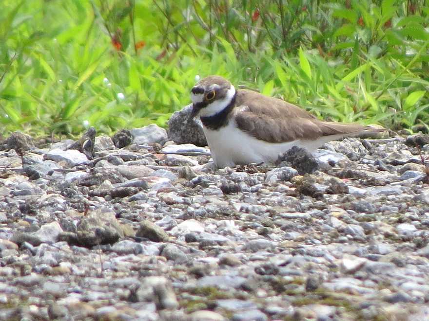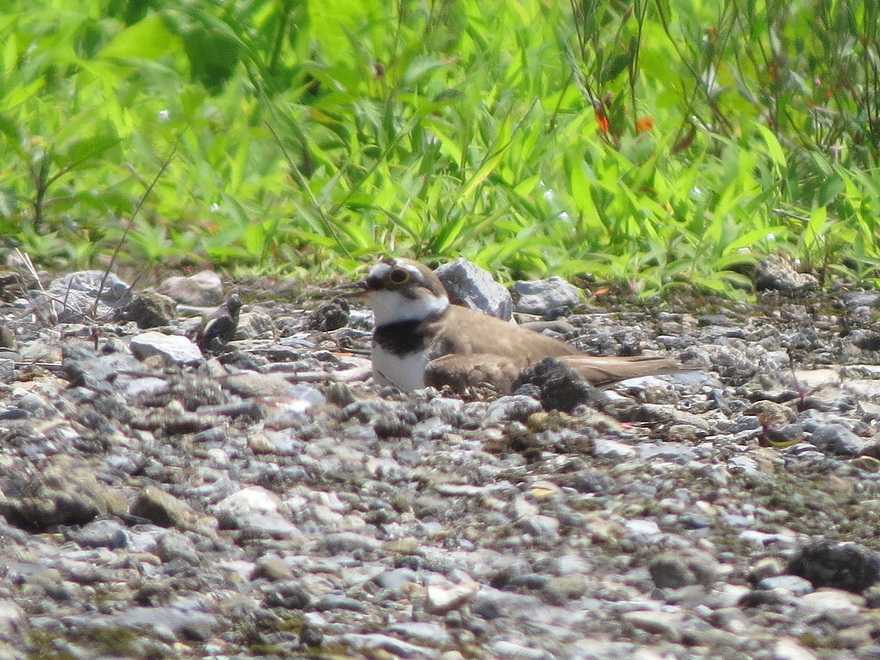 ツミを観察した後は、近郊の砂利が敷いてある駐車場で抱卵中のコチドリの様子を見に移動しました。じっと抱卵しているのかと思いきや、短時間ですが巣を離れテリトリー内を巡回した後再度巣に腰を下ろす光景を観察。腰を下ろした際、嘴を少し開けて鼻歌を歌うのような感じに見えたのがチャーミングでした。