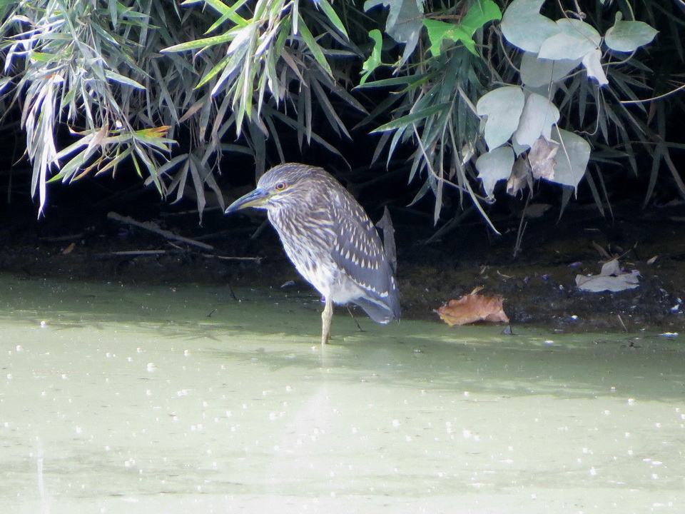 このほか、ダイサギが小さな池で魚を捕食する姿、ゴイサギが日光を避けるように羽を休める姿、沼の水面にカイツブリ、杭の上で暑さを耐え忍ぶカワウの姿を観察しました。これからコガモが次々と飛来するものと思いますが、雌雄がどのような割合なのか、羽衣のいろいろを観察する楽しみがあります。