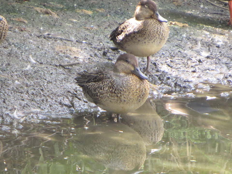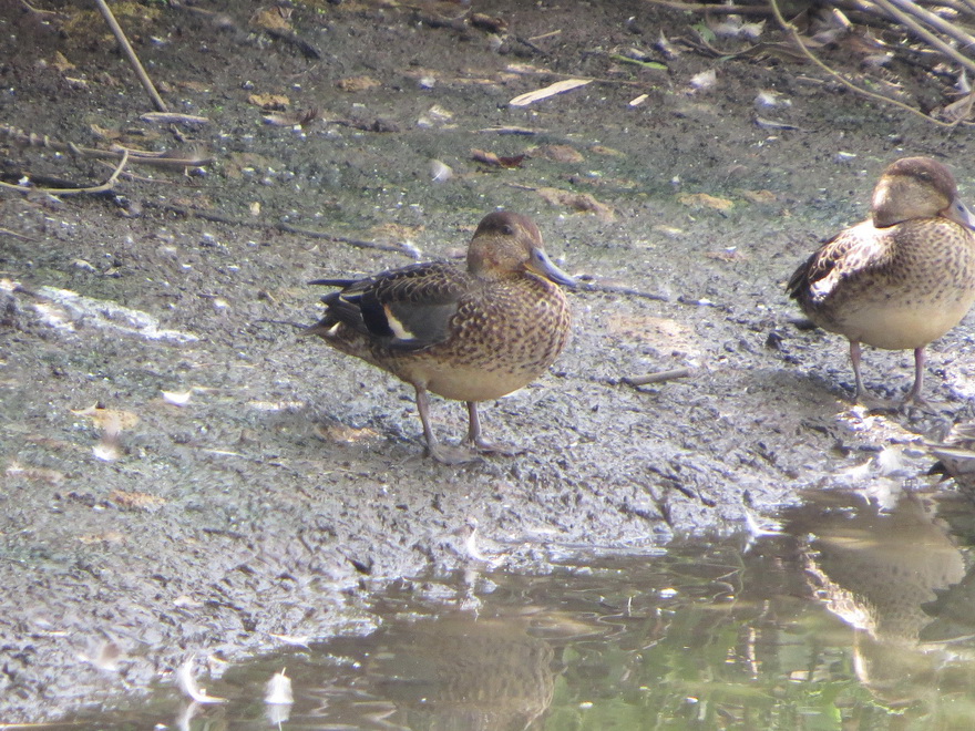 観察できたコガモは計9羽、嘴全体が黒いエクリプス(雄)は1羽、のこり8羽は嘴基部側面に黄色味があり上面が黒っぽい若鳥と思われる個体と嘴基部側面の黄色味があり上面が色味の乏しい雌非生殖羽と思われる1羽でした。