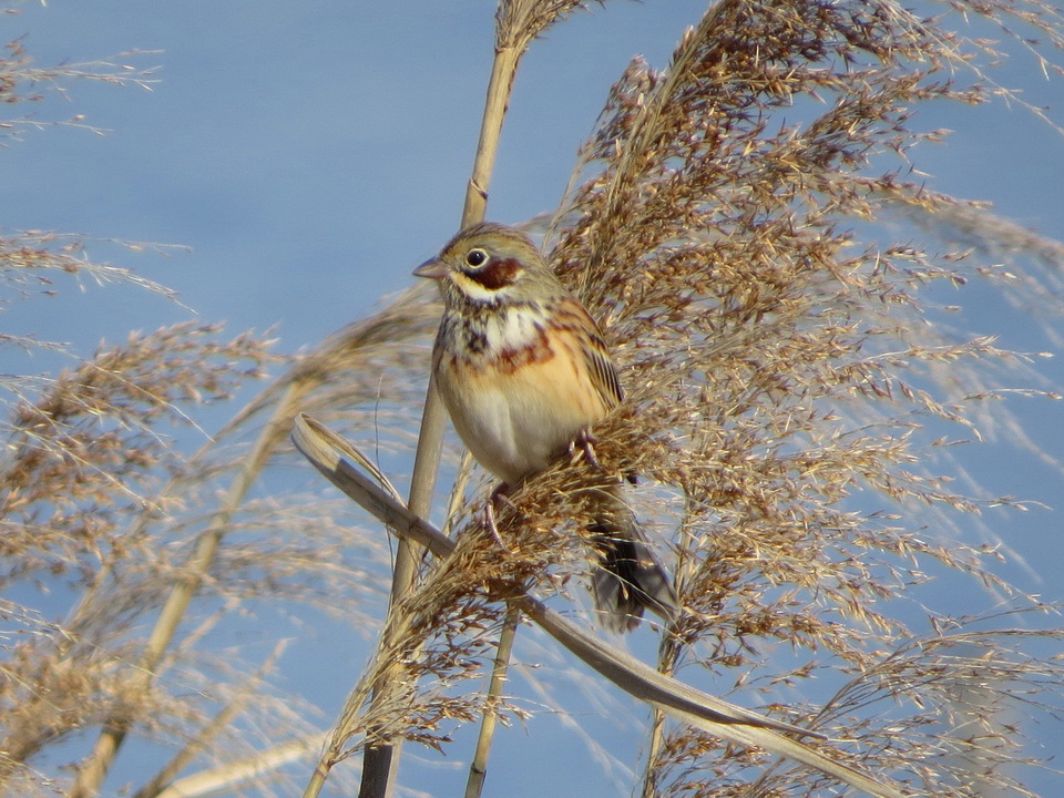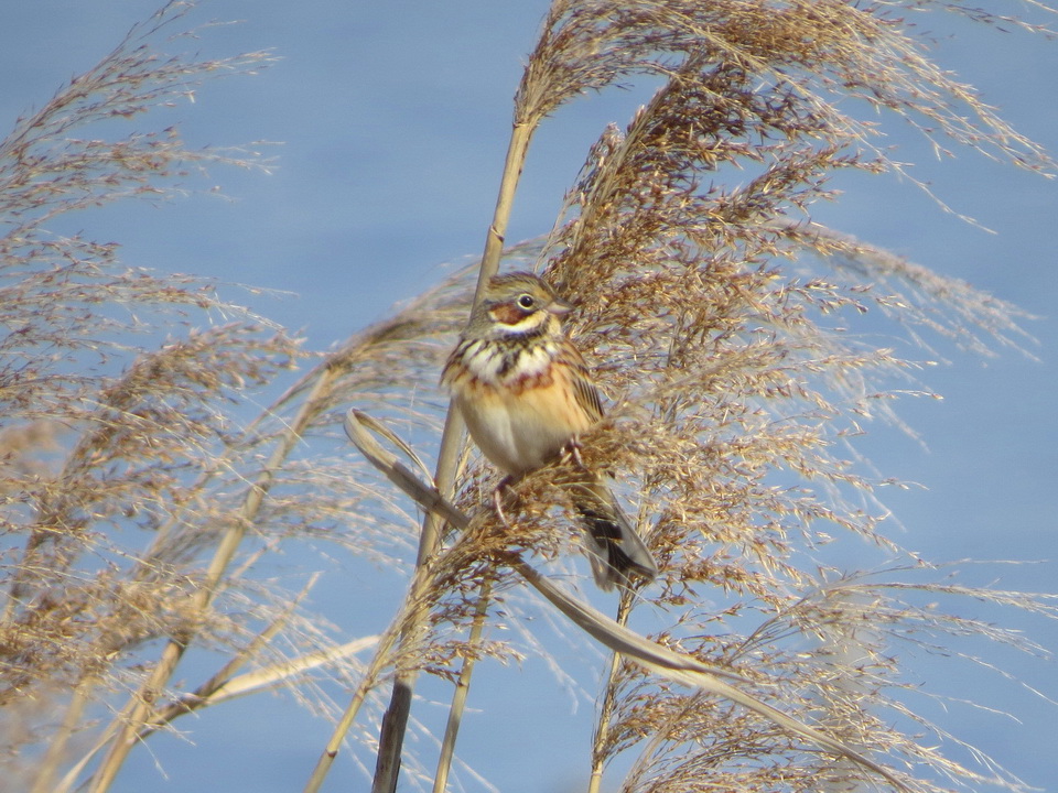 遊歩道脇の木でジョウビタキが喉を膨らませ「チュルリ、チュッチュリ」と囀っている姿を見つけたり、ホオジロ、ホオアカ、オオジュリンと出会い楽しい時間でした。