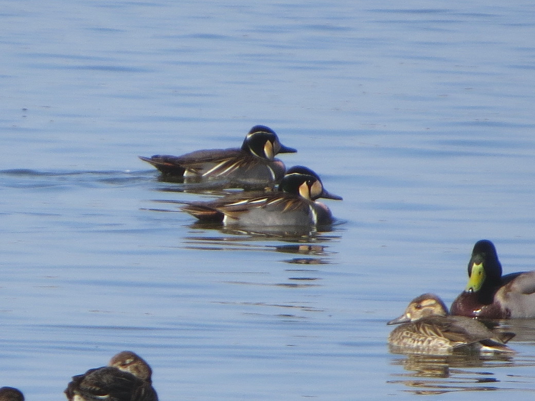 今冬、トモエガモのピーク時の個体数は約8万羽で前年12万羽と比較すると30%強少ない個体数でした。今日、水面で記録した個体数は8400羽で今冬ピーク時の十分の一。