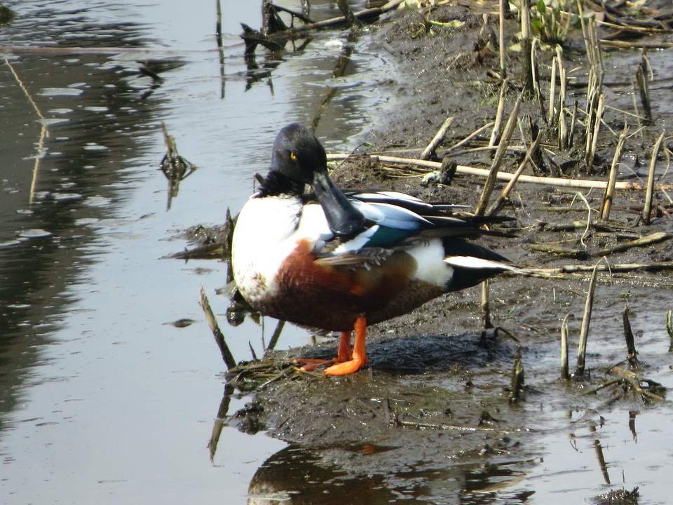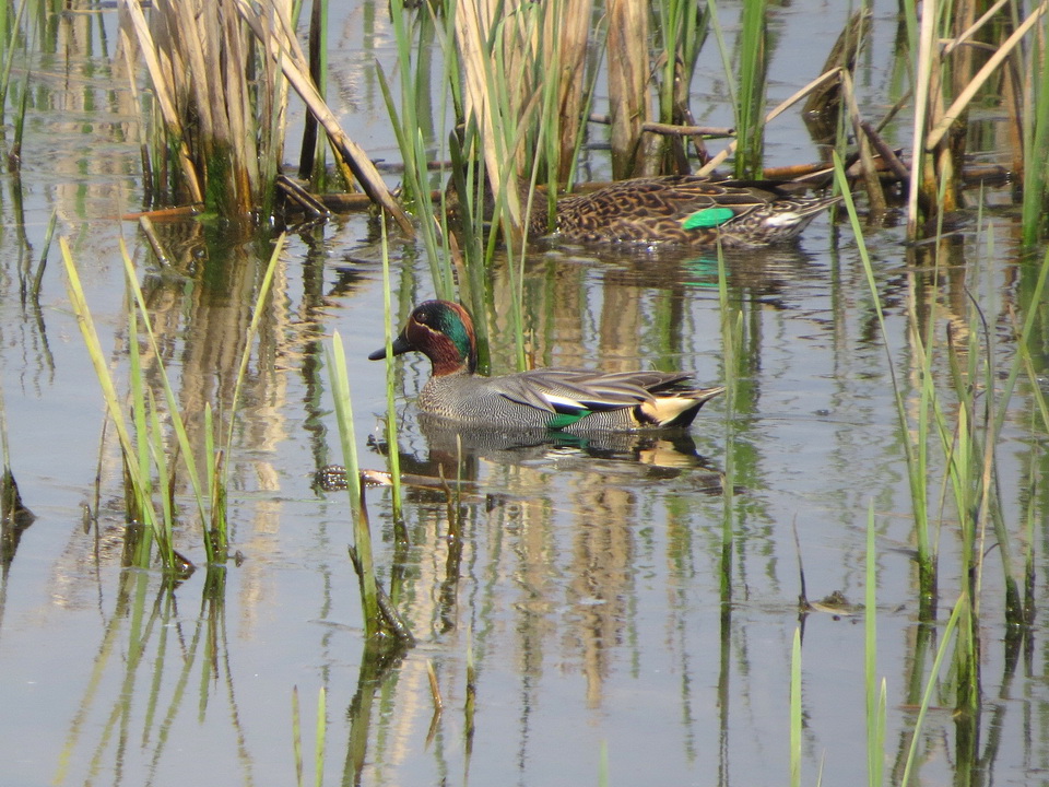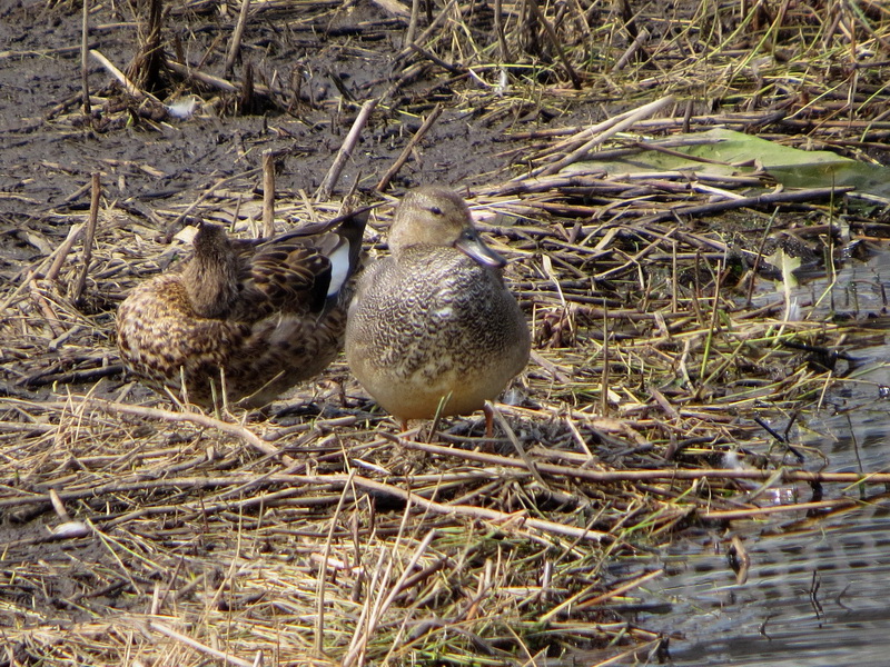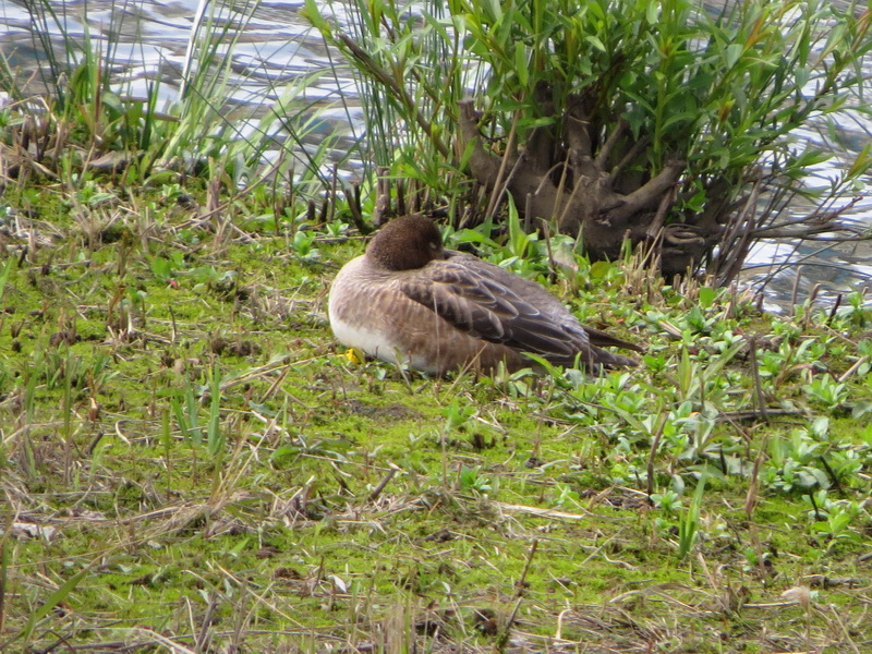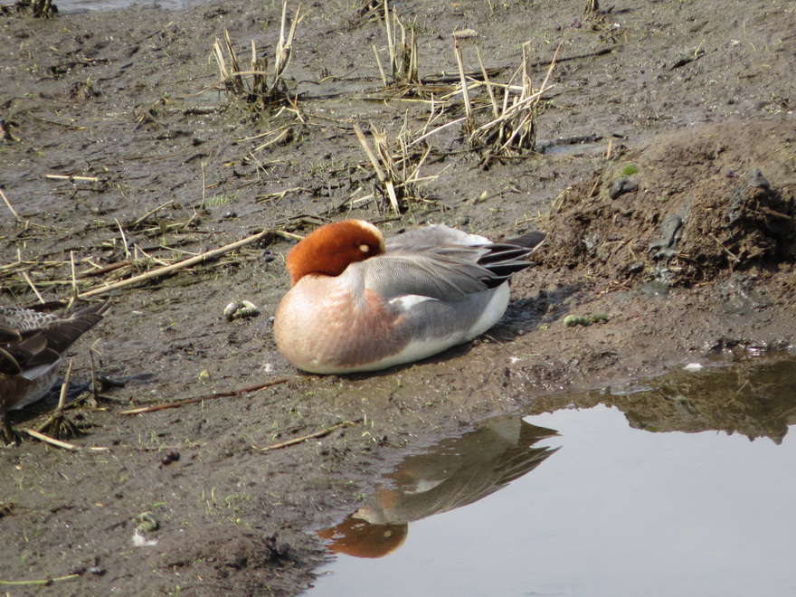 調整池にはオカヨシガモ、コガモ、ヒドリガモ、ハシビロガモが羽を休めていました。
