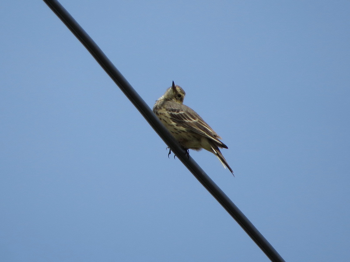 多くの出会いは地面を歩いている様子がほとんどなので、電線に止まる姿は新鮮でした。