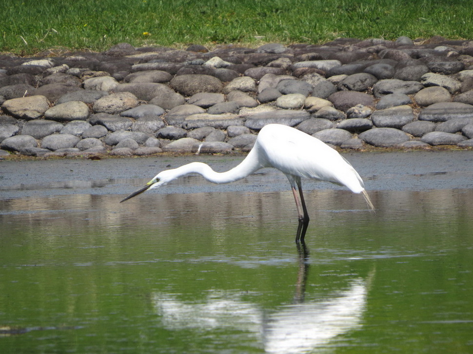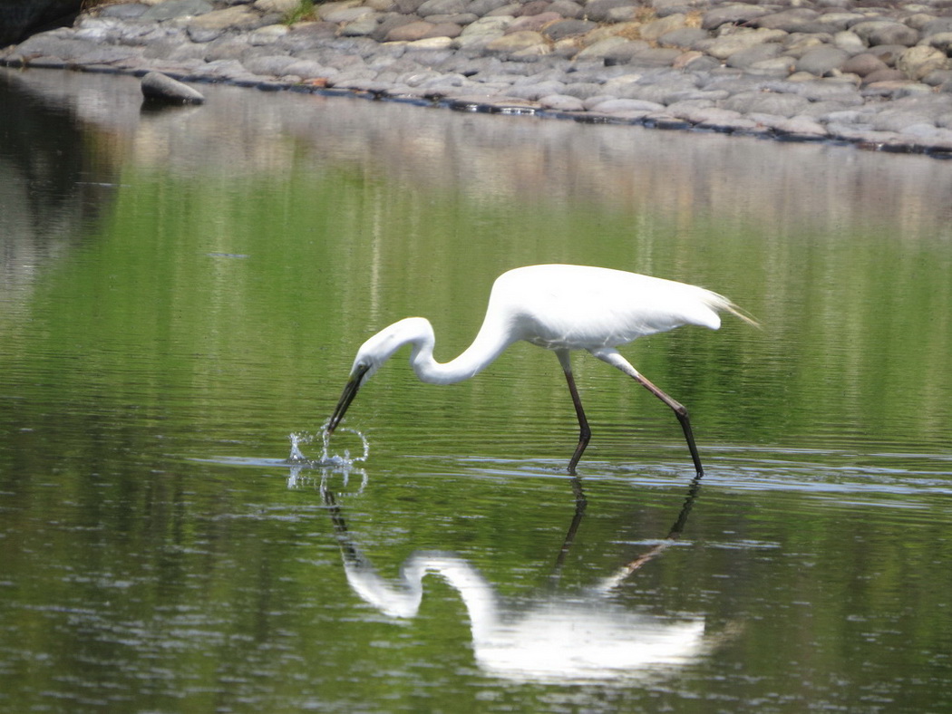 ダイサギは、眼先が緑緑色、脛にピンク色があり地色は黒く亜種チュウダイサギ夏羽と思われました。(亜種ダイサギは脛だけでなく跗蹠もピンク色)