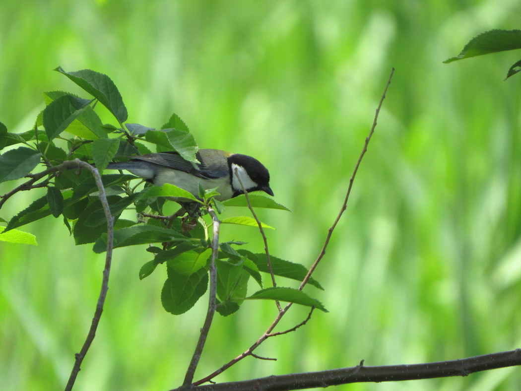 林でヒタキ類、シジュウカラ、ヤマガラ、メジロが移動する姿を見つけましたが、