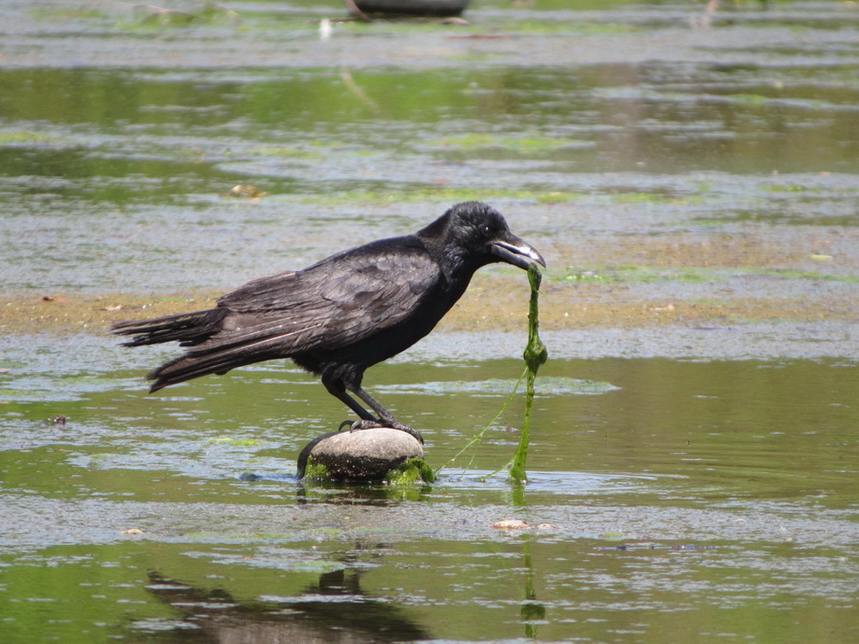 それを対岸の岩にとまってハシブトガラスが凝視していた姿も観察しました。