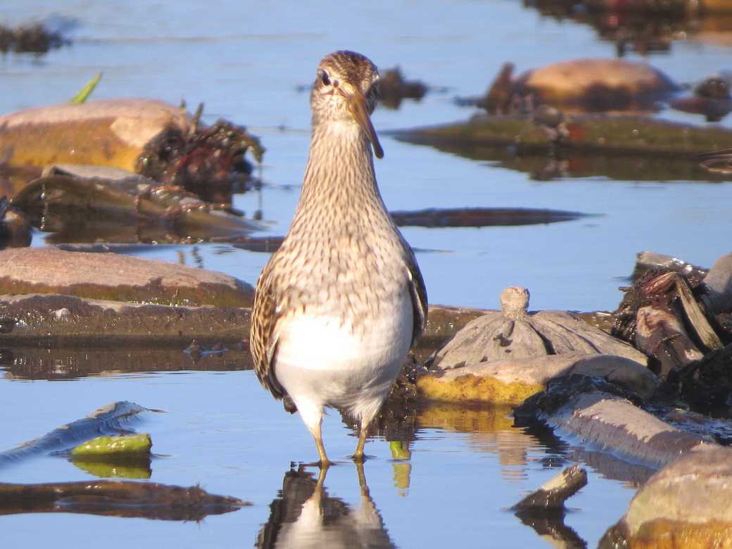 アメリカウズラシギはシベリア北部や北アメリカ大陸の北部で繁殖し、南アメリカ大陸南部やオーストラリアで越冬するとされています。秋、繁殖地から越冬地向かう途中に立ち寄る個体を見かけることがあります。