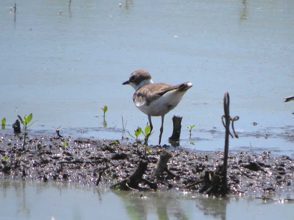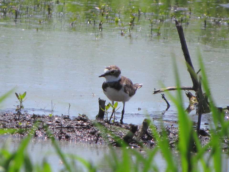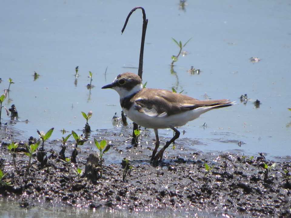 ダイサギの動きを観察していたら、近くの水田の一角にコチドリが飛来。