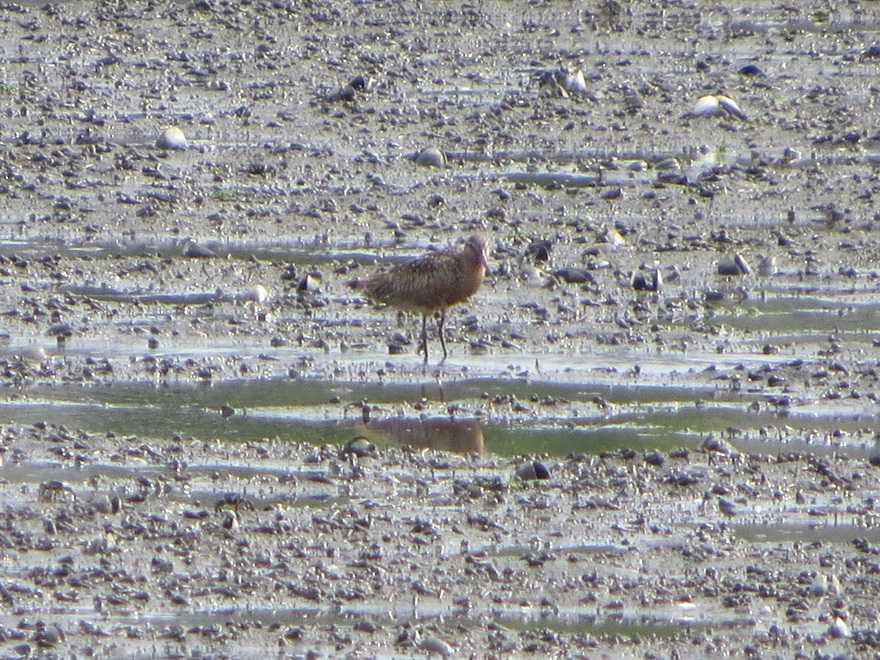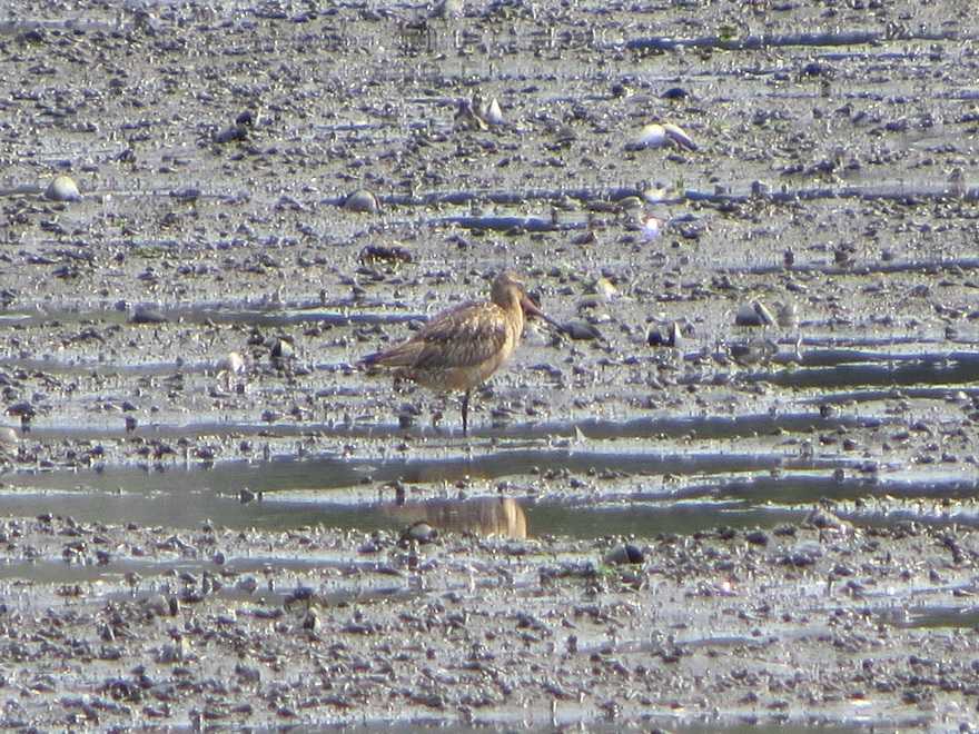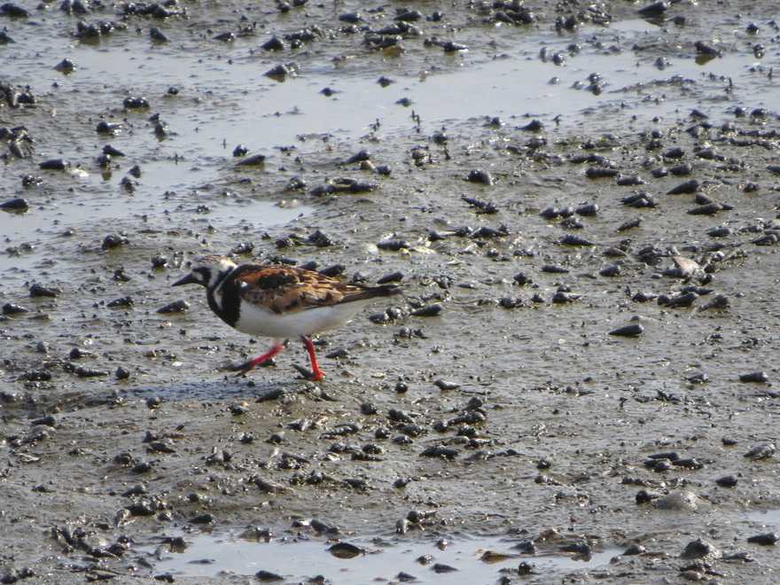 その後、かつては干潟のあちこちで姿を見かけていましたが、近年はなかなか出会えなくなったキョウジョシギ雄成鳥夏羽が降り立つ姿に遭遇できました。