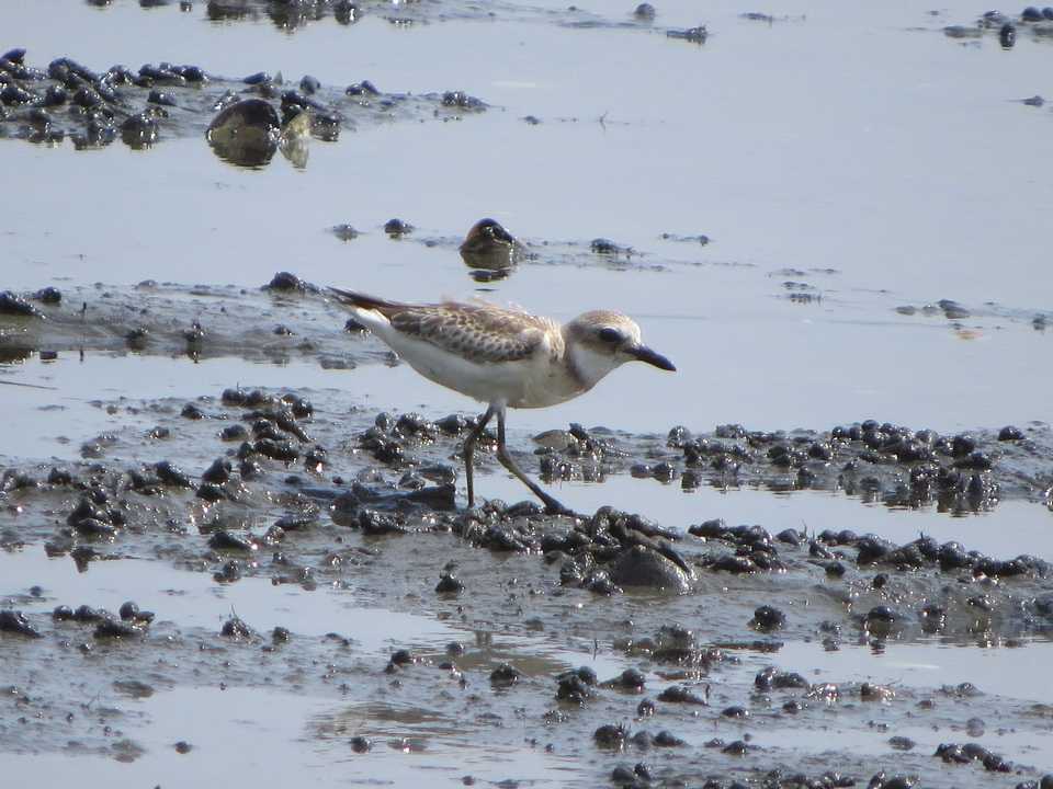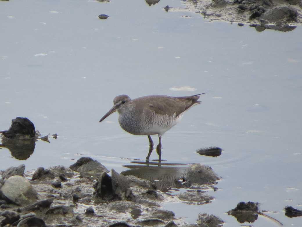 今日のお目立ては、オオメダイチドリ、ダイゼン、オオソリハシシギといった鳥たちとの再会でした。出発早々、オオメダイチドリの姿を発見。翼の羽縁は白い幼鳥でした。嘴と足はメダイチドリに比べて明らかに長い特徴を観察。