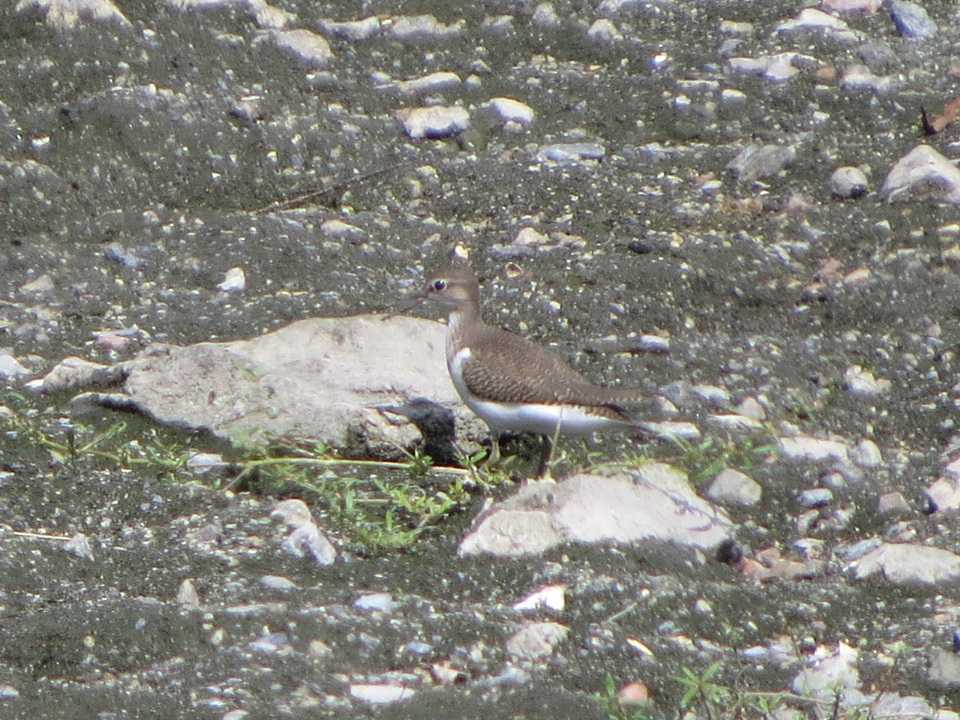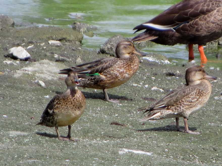 カルガモ、コガモ、イソシギが羽をやすめ、餌探しに余念のない姿を観察できました。