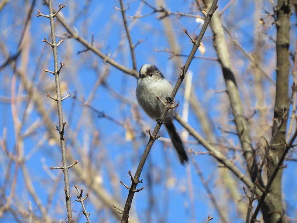 翼の長さは長くありませんが、羽ばたきによって肩の負担が少なく素早い羽ばたき、狭い場所でも飛び回れる特徴を持っています。エナガは円翼ですが、体重が軽く翼面荷重(翼の単位面積にかかる重量が軽く長い尾が枝の間をすり抜けて飛翔する時のバランスをとるのに最適なので混群に加われるものと思われます。