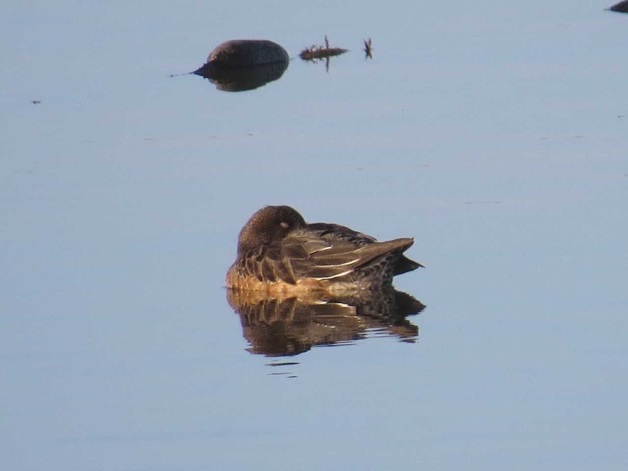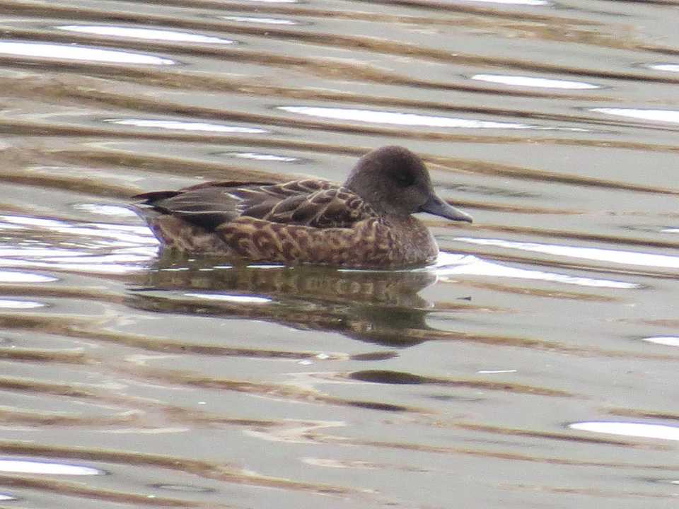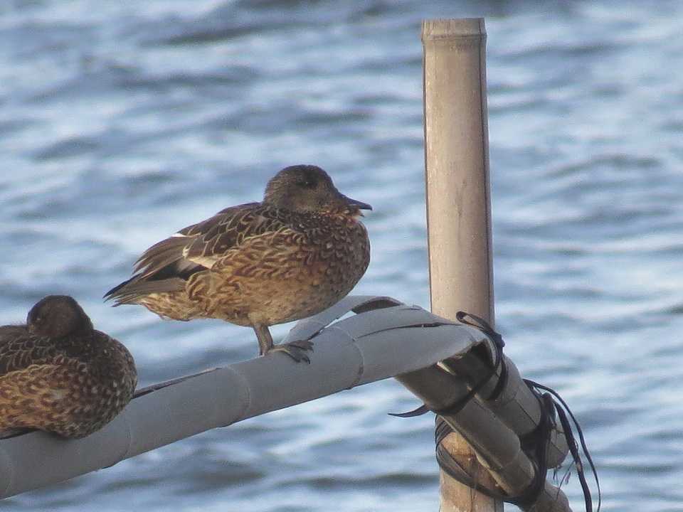 嘴が水面採餌のカモでは細長く、尾が短めの中型のサイズです。