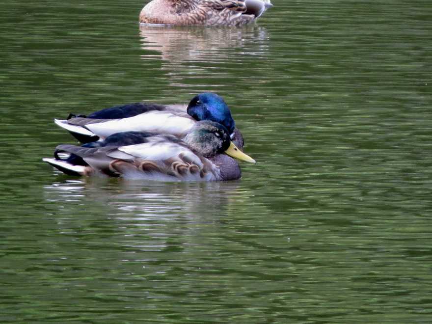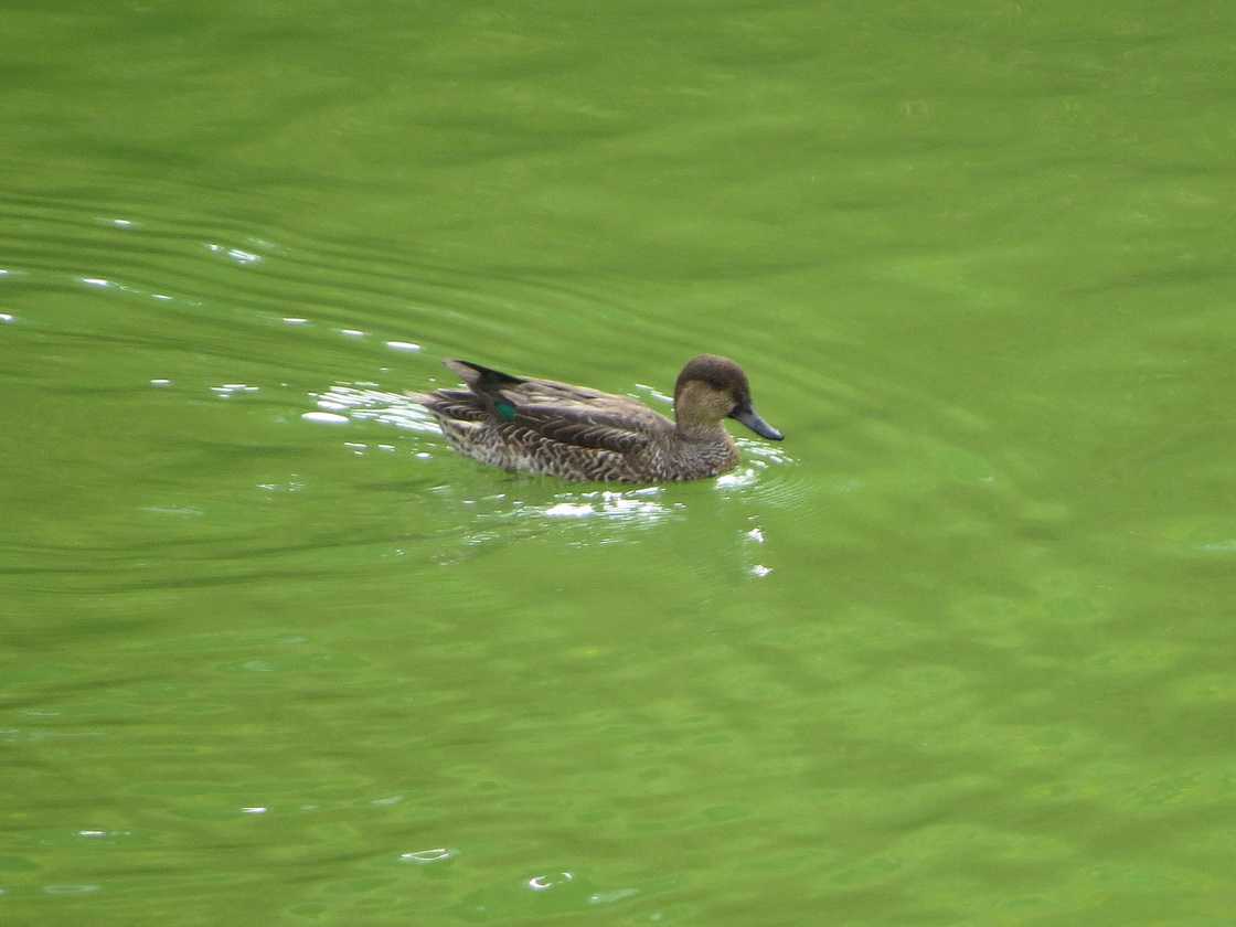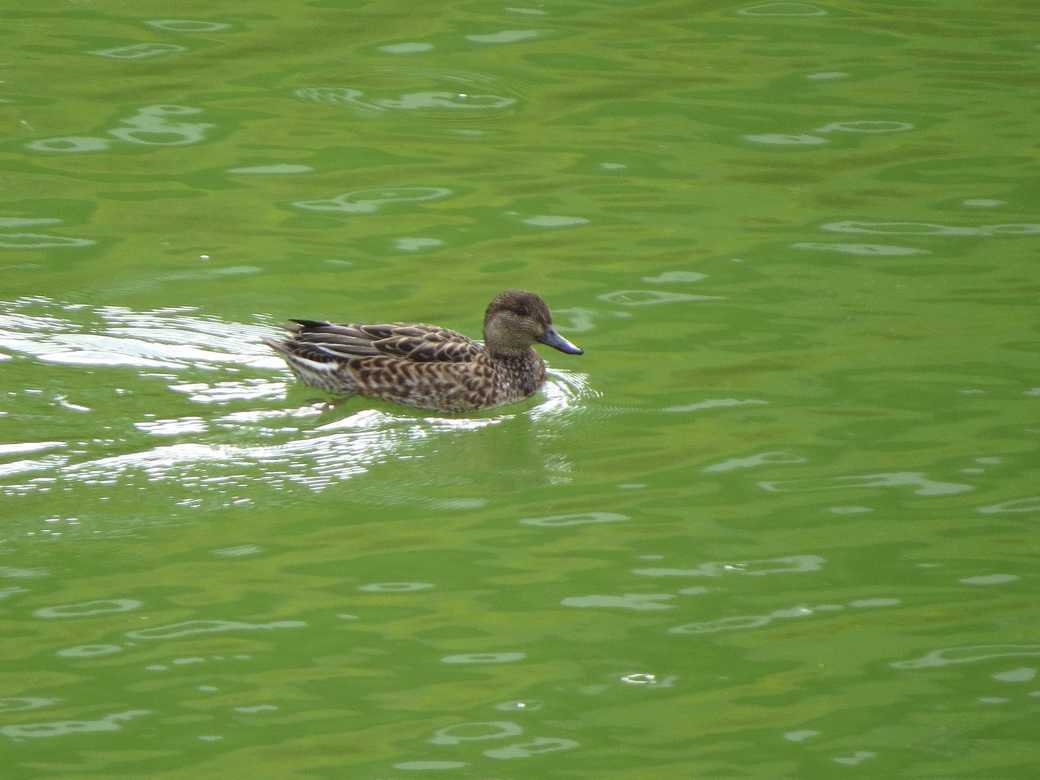出発地点の小さな池には、マガモ、コガモが羽を休めていました。