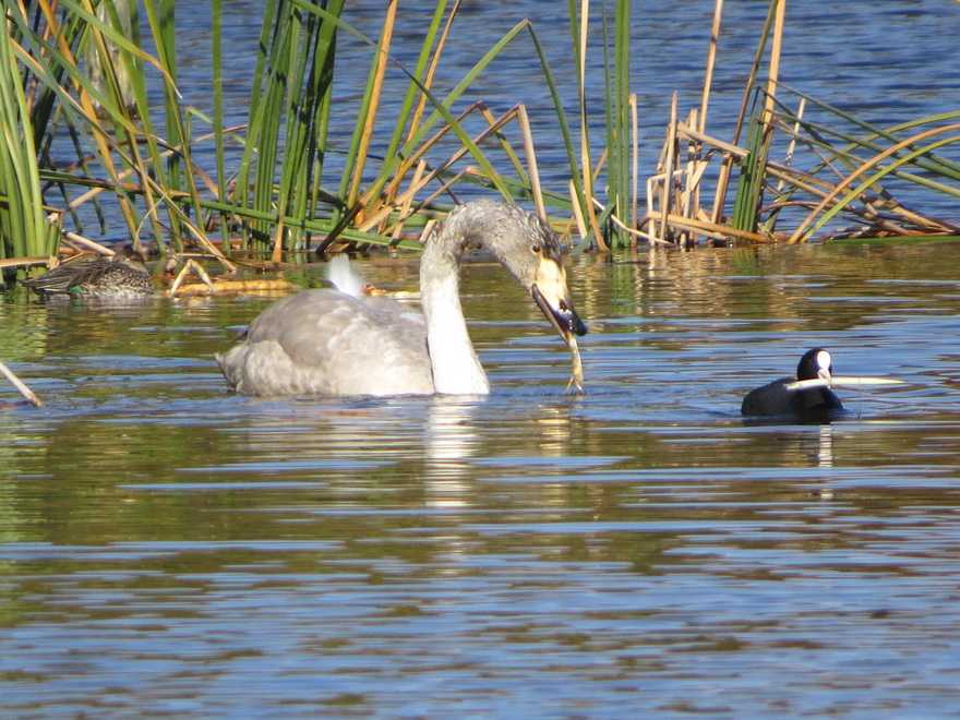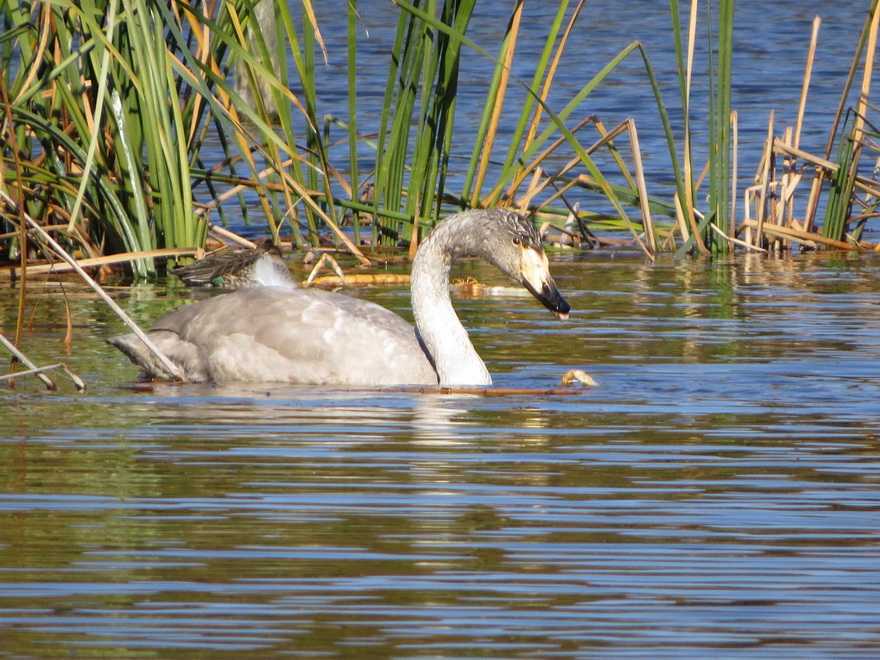 千駄堀池には、オオハクチョウ若鳥1羽が飛来していました、