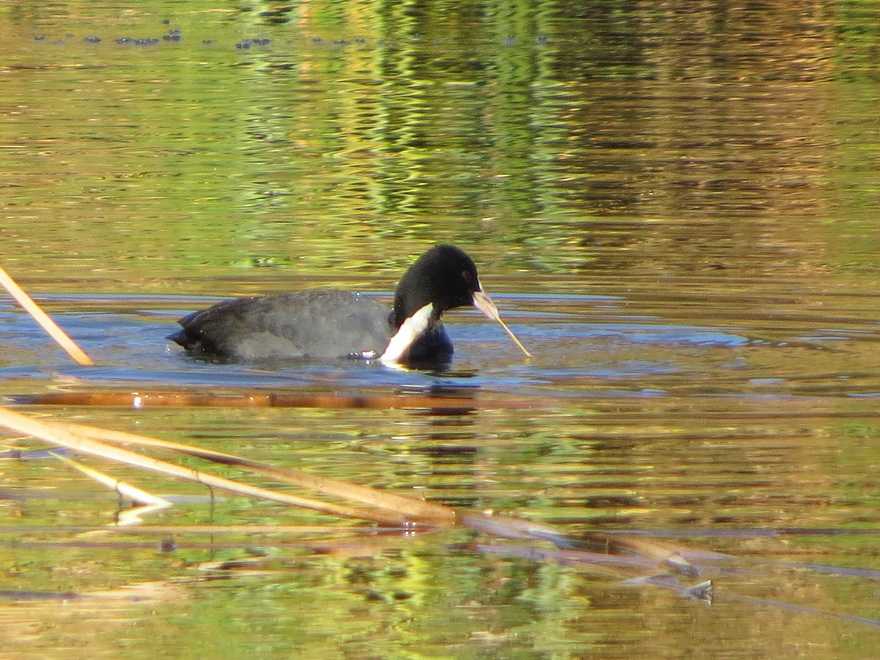 このほか、池で水草を捕食していたオオバン、杭に止まっていたカワウ成鳥、嘴の印象がミヤマガラス似の額がでっぱらず嘴がとがっていたハシボソガラス、私の方を見て捕食したどんぐりの実は渡さないとばかりに目の前に登場したハクセキレイとの出会いなど楽しい時間を過ごしました。