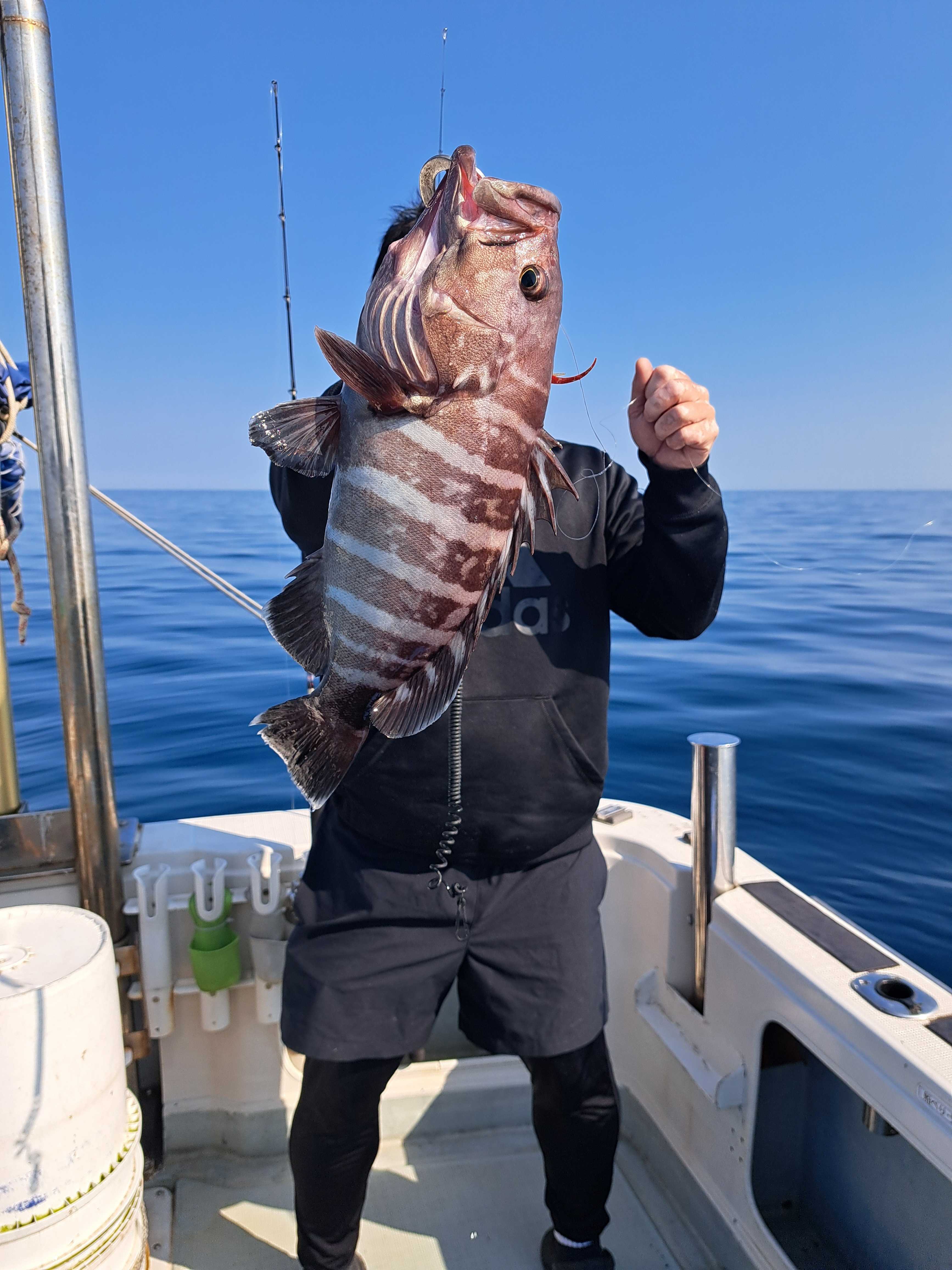 今日から酒田祭り!前回からとはうって変わり💦飛島のお魚さんもお祭り休暇突入ですかい🥲サイズも出ず…今日は心からポキポキ音がしました…音が止まりそうもないので今日はちょっぴり早めの帰港となりました💦ヒラマサ、ヒラメ、マハタ、ソイ2種、カサゴ2種、ミズカレイ…現場から以上です😳大変お疲れ様でした!また宜しくお願いします🙏飛脚!だ~いしパイセン!初挑戦!釣りガール誕生👏そろそろですねぇ😉海峰 09043192261