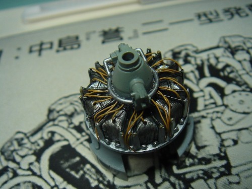零戦の栄エンジンには何度もプラグコードを取り付けたことがありますが、誉エンジンにはあったけな。シリンダー数が多くなるのでコード本数もその分増えます。基本は栄と同じですが。シリンダー部分は銀塗装のうえスミ入れしてメリハリつけています。
