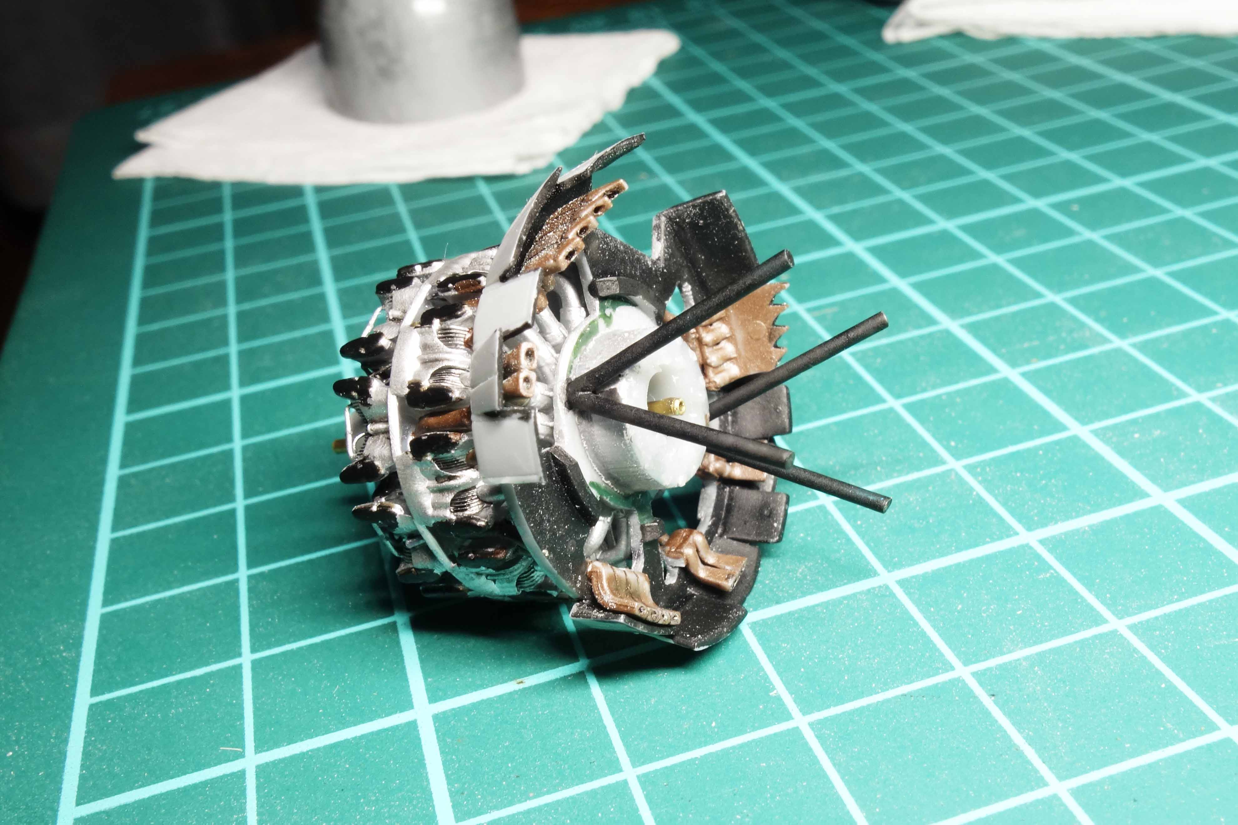 エンジン支持架を1ミリプラ棒でつくりました。のぞいて見える部分だけ。