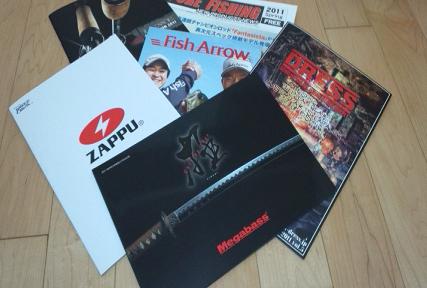 WiiSportsのボーリングで3歳の長男が258とゆーハイスコアを出しビックリしたカジャです。 ちなみに自分のハイスコアは233(泣)。 フィッシングショーが閉幕し長男の興奮冷めやらぬまま2日が経ちました。 そこで頂戴してきたカタログ等を整理することに。 今回のフィッシングショーは3歳の長男と一緒だったので回ったブースも少なくカタログも少なめ。 整理はすぐ終了。 でもってこれがフィッシューアローで頂戴したフラッシュJ+ウィールヘッドのセット。 これは長男が貰ったモンなんで大きくなって釣りをするよーになるまで使わずにとっときます。 そういえば即売会で買ったものがありました。帰ってきてから袋を整理する時に出てきました、正直忘れてました(笑)。 フィッシュアローの福袋。目的はハドルジャック125SS。だってどこにも売ってないんやもん・・・、福袋の中身が見えてて5000円で衝動買い。 これにウィールヘッドが入ってましたわ。 たぶん右上と右下のヤツは完璧使わんやろね。そんなら値段相応やん、お徳感無しやね。まあハドルジャックが欲しかっただけなんやけど・・・。 で、Fマックスで前売りチケットと一緒に買ったルアーがコレ。 MegaBaitって書いてるなんかよーわからんモンやけど日本製ではないのは確か。 パッと見てメッチャ気になったんで購入、そのお値段100円。 3つ買っちゃいました、心置きなく投げ倒せます。 早く暖かくならんかなあ・・・。