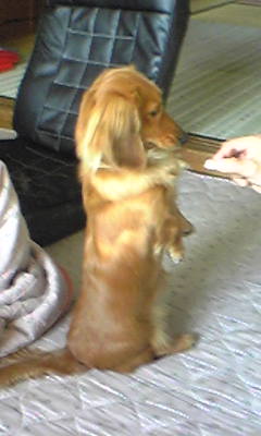 ダックスは腰に負担がかかるから、あまり立たせるとよくないと聞きましたが、ココア自ら立ってしまうんですよ(>_<)
