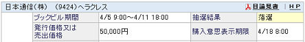 日本通信(株) (9424)ヘラクレス を申し込みました。結果は、4/12 18:00以降になります。今回は、売り出し価格が安かったので6株申し込みました。どうか当りますように(-人-)トップページ●アクセスアップのための人気blogランキング●