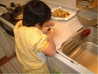 弟くんがから持ち帰ったおいもどうせなら、パパさんも一緒に家族みんなで夕飯を食べられるときそんな時に一緒にって思ってると、タイミングがなかなか掴めなくって…その間にも天ぷらにしようかなぁ スィートポテトもいいなぁと、一生懸命悩み抜いた弟くん結局、天ぷらに決まりましたで、昨日やっと作ったんだけど、弟くんが危ない手つきで切ってくれました 「これはお父さんの 特別なんだよ~」見てみると、すっごい分厚いふふふっ いつものあたしなら「半分に切った方がいいんじゃないかなぁ」絶対そう言って、意見も聞かずに勝手に切ってる・・・・・でもねぇ、せっかくの弟くんの気持ちだからねぇそのまま揚げちゃった他のに比べてすっごい時間掛かったけど…弟くんの満足そうな顔と、パパさんの驚いた顔ぬぁ~はっはっは~、楽しい夕飯となりましたとさ