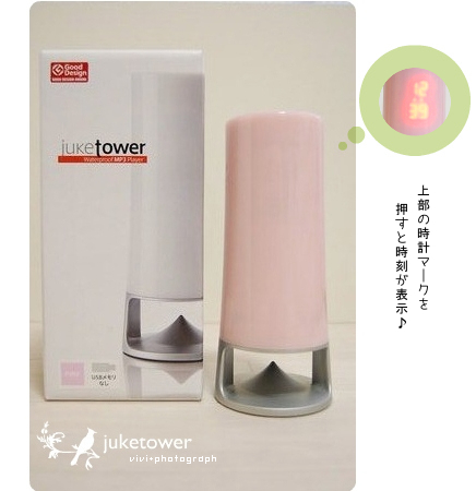 < ちょっと前の駅伝の時に買ったjuketower juketower 感想の多い順検索しばらく使ったので、簡単に感想レポを juketowerは、防水のMP3プレーヤーです♪これめっちゃイイですよ~!!500mlの缶ビールとかそのぐらいの大きさです。以前は、この2つを使ってました↓ これはCDだから、比較にならないかもしれないけど断然juketowerのほうが使いやすいです^^やっぱりUSBメモリを使うから、たっぷり曲が入るし操作も簡単で、何より音の広がりがイイです。音質は、普通の音楽プレーヤーと比べるとさすがに劣るし防水独特のボワーンとした感じがあるけど、防水にしては良い方だと思います!! 上部に「時計・スタート/停止・音量・進む/戻る」ボタンがあります。時計マークを押すと、時刻が表示されます。もう一回押すと消えます。夜寝る時に、枕元に置いておくのもありかも^^下はこんな360度の不思議な形になっていて、これが音の広がりを出してるのかな~?と思います。電池は3本です。以前使ってたのは、4本とか6本だったので少なくなって嬉しい~!アルカリが写ってるけど、実際は繰り返し使える電池を使ってます。そうそう。電池の持ちもイイですよ~!前のCDプレーヤーは、3・4日しか持たなかったけどこのjuketowerは、余裕で1週間以上持ってます!!(1日約30分使用)USBメモリは曲もたくさん入るし、コンパクトなので使いやすい♪CDだとアルバム1枚分しか聴けないもんね^^;デメリットというか欠点は、リピート機能が無いところかな。ずっと流し聴きする感じになります。あと、少しだけ進めることは出来ないです。「進む/戻る」は1曲まるまる「進めるか戻る」になります。あとランダム再生はあるけど、かなり簡易的な感じです。それから操作しないと1時間で自動的にオフになり止まります。これは別にデメリットではないかな?寝る時に、枕元で流して使えるよね^^音量も幅があるので、アウトドアでも使えそう~♪半径2・3メートルぐらいなら大丈夫な感じです。これは、ほんと買って大正解っ!!これから寒くなってお風呂も長くなるしねUSBメモリに入れるのも簡単だったし。※本家サイト(楽天外)で入れ方が載ってます。「juketower」で検索何よりこのフォルムが最高に可愛いです♪流し聴きでもOK、音にもこだわりが無いならおすすめです。本家NET 【エヌイーティ】 online-shop楽天市場店一番多いレビューを見る⇒NET 【エヌイーティ】juketower レビュー 日記一覧はこちら 今売れてる!リアルタイムランキングはこちら