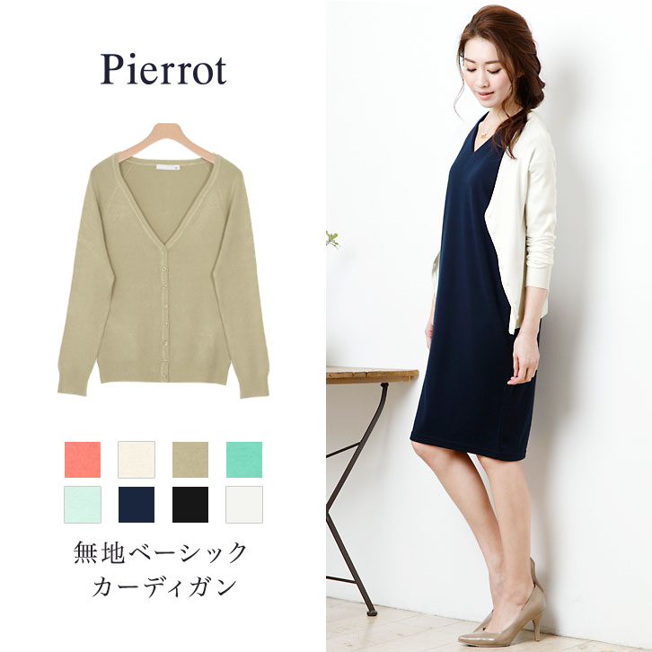 3時間のみ500円!1080円以上で送料無料中! 【楽天スーパーSALE*3月29日21:00~23:59】★★お家で洗えるストレッチニット素材!無地ベーシックハイゲージニットカーディガン☆ 無地 カーデ 羽織り 長袖 レーヨン混 Vネック M L LL ピエロ pierrot ぴえろ piero【返品不可】