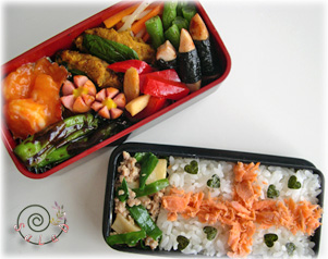 ご飯は相変わらずイングランドの国旗模様です。 今日は鮭フレーク♪