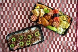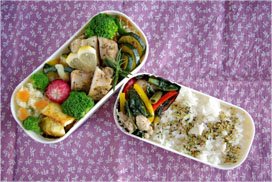 今日はお弁当がありました~。(*^▽^*)昨日、会社の夫から電話があって「あしたとあさってのお弁当お願い~」と。おお♪と思って、さっそく2日分のお弁当おかずを考えたのですが夜になって帰宅した夫、「ごめん、やっぱりあさっては要らなかった」。ありゃ~、あさっての方に夫の好物をそろえておいたのに~。もう下準備も半ば終わっちゃったし、取り替えられないなぁ。。…というわけで、今日は夫にとって残念なお弁当ですが(笑)、大きな画像とおかずの詳細はこちらです。「お弁当×さんぽねこ」うわー、久々に全消しやってもーた!!リンク張ったりしてたからちょっとの文章でも悔しいわ。
