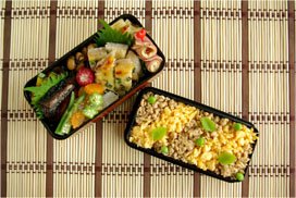 幸い今日は時間に追われることなくお弁当完成です♪でも正午ごろ、買い物にでかけたらお天気雨に降られて大慌てで走って帰りました。ゼェゼェ。それからお日様は完全に雲に隠れ、関東地方もいよいよ今日から梅雨入りだそうです。さて、お弁当。メインは鶏そぼろと豚肉巻き。今日は「隠れハート」が潜んでます。大きな画像とおかずの詳細はこちらでどうぞ♪「お弁当×さんぽねこ」明日はお弁当お休みです。( v ̄▽ ̄)エヘッ。