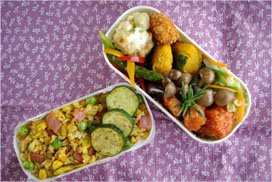 このあたりは大雨ではないのですが、日差しがあっても雨が落ちてくる…相変わらずよくわからないお天気が続いています。今年は冷夏になるんでしょうか。心配です~。さて、今日は予告通りお弁当がありました。しかも早出で1時間の早起きです。その割には頑張ったお弁当。大きな画像とおかずの詳細はこちらです。「お弁当×さんぽねこ」そして明日もお弁当が要るそうです。あら。ないかと思って、今日気合入れたのに。。。(;´▽`A``明日は手抜きしちゃいましょう~。(笑)