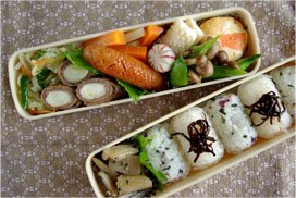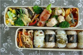 今週もはじまりましたねーっ。(*^▽^*)朝起きるにはちょうどいい気温の今日この頃。今なら気持ちよく起きあがれる!!・・今だけ?・・ささ、月曜日のお弁当で~す。(* ̄0 ̄)/ 今日は豚肉のモッツァレラ巻き、いわしとジャガイモのローズマリー焼きなんかが入ってまする。昨夜、酔っ払って帰ってきた割にはまともな月曜弁当?^^;お弁当の大きな画像とおかずの詳細はこちらです。「お弁当×さんぽねこ」おにぎりにするといつもよりご飯の量が増えるんですけれど夫、夕方メールしてきて「月曜はお腹がすく」とな。うーん。でかおにぎり持たせなきゃダメだったかな?我が家は週末になると胃拡張。私も明日はウォーキングしなくっちゃ。