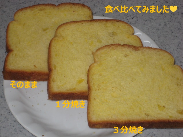 今日は、そのまま、焼き1分、焼き3分と食べ比べをしてみました。