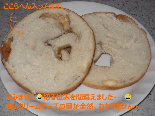 「柿」のほうです。ベーグルの具材として「柿」は、珍しい。
