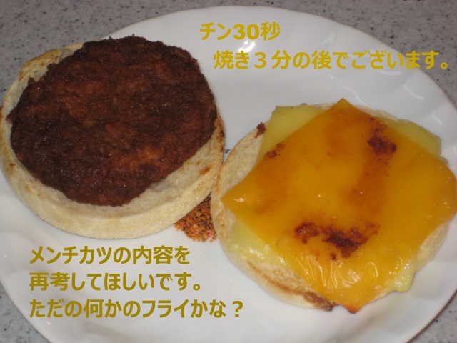 マフィンもダブルチーズも好みなのですが、メンチカツはイマイチ。
