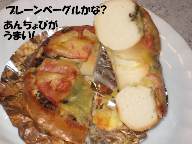 夕飯でございます。どっちにしようかなぁ~?定番ベーグルをいただきました。
