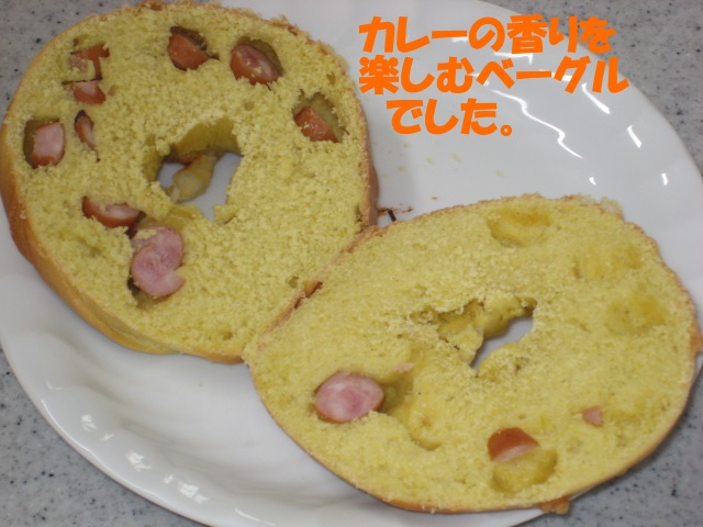 カレー生地でパリパリソーセージを包み込んだベーグル にとろけるチーズをトッピング。