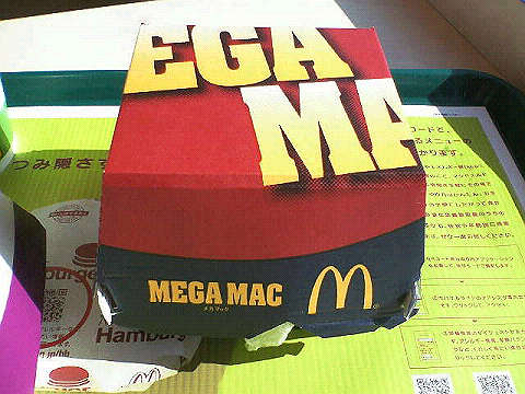 昨日、話題のメガマックを食べてみた。1日数量限定メニュー(ちなみに昨日訪れた豊洲店は20個限定発売)なので、10時30分発売開始と同時に買い求めた。肉4枚はボリュームたっぷり。これなら人気になるのもうなずける。箱に入った状態の「メガマック」。箱を開けた状態の「メガマック」。箱から出した「メガマック」。上からバンズ―肉2枚―レタス―バンズ―肉2枚―チーズ―レタス―バンズの構造。