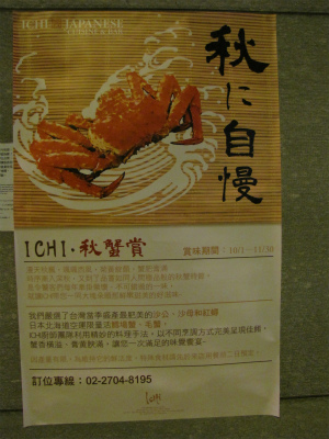 淡水河が台北市の南側(萬華)に流れて、400年前から、中国の福建省から入植者が生活していた。貨物船から降ろした荷物は、ジャンクで淡水河の上流の萬華に陸揚げして、市内に運ばれる。人口が増えて、徐々に、台北盆地の北側へ移動して行った。それが、若者の繁華街(西門町)、商業街(松江路)と発展して来た。東京都でも、荷揚げの築地、繁華街の銀座、商業街の新橋、の順番で、都市が広がっていく。では、スカイツリーのような所は、何所だ?台北では、東区の高層ビル101が、新しいお洒落の象徴だ!東区の周辺は、新貴族と言われるお洒落族が生活している。昼間は、立派な高層ビルで働き、夜は、新都会的なスポットで遊ぶ。日本酒の売込みで、繁盛店のICHIを訪ねた。カクテル・バーと言われるだろうか?イケメンの店員さんは、個性的な男が、サービスに当たっている。来客は、お洒落の女性が中心だ。蟹料理を頼んで、赤ワイン漬けのトマトサラダ、鴨肉のお酒漬け、どれも、お洒落で美味しい!ハイカラの店には、高級な日本酒が似合う。純米、大吟醸、で試飲したら、これが、マンハッタン、CITYに居る錯覚が起きる。笑!酔わせるには、ぴったりの幻想空間だ!killing you softly!