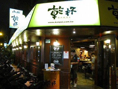 ほぼ、台北市の真ん中に、日本人が多い林森北路へ行った。本日は、日本人が台湾の居酒屋で、どんなアルコール類を楽しんでいるのか?調べる。竜という店へ。極普通にある和食居酒屋で、現地の駐在員と日本から来たビジネス客で賑わっている。料理は、刺身、肉ジャガー、おにぎり、など、家庭タイプのお袋味のようだ。日本人に取って、家族のような雰囲気で、安心感が得られる。値段は、現地の店に比べて、やや高目で、日本と同じ相場だ。二人で、2600元(6500円)だ。飲んでいるのが、台湾ビールに、薩摩の芋焼酎と日本酒が多い。アルコール度の低いものが多い。同じ日に、3箇所の所で、飲みまくる仕事だった。笑!