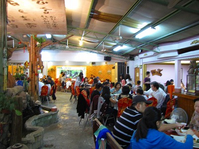 日曜日の朝、先生に起こされて、ゴルフの練習場へ行った。頼まれアキラのドライバーを渡して、集金した。日本の製品は、皆様の間では、評判が高い。嬉しい!昼頃、仲間と一緒に、大団円と言う農家風のレストランへ。普段、台北市で、セカセカ、ゴミゴミ、働く皆様は、休日には、家族を連れて、一息を入れる所だ。草花が植えてある。なるべく、自然に近い環境を作っている。料理は、野菜を多用して、地鳥が看板商品だ。ゴルフ仲間から、寝たきりの84歳母親のことを相談された。夫婦共稼ぎで、外労(外国労働者)を雇って、介護をしている。母親のボケが進み、会話が通じにくい。兄弟4人が介護する事を遠慮して、本人達が苦労していた。身心が疲れた!と嘆いた。家族会議で、真剣に問題を話し合うように薦めた。3人で、4菜1湯で、1000元(約2700円)、結構な量だ。