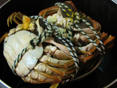 ゴルフへ連れて行った張さんから、2本の活き蟹を頂いた。ちゃんと、紐で結ばれて、専用のブランド・ラベルも付いている。手足も動いているのを確認して、日本酒で、20分ぐらい、酒蒸しにした。ふたを開けてみると、味噌がいっぱい!高級な日本酒から、高貴な香りが漂って、すごく、おいしく頂いた。夜半、何故か?お腹が痛くて、何度もトイレへ走った。これでもか、これでもか、夜明けを待って、やっと、収まった。一日中、横に成って、休養をした。人のご好意で、食中りに成ったから、文句が言えない!数日後、張さんの具合も聞いてみたいです!笑!