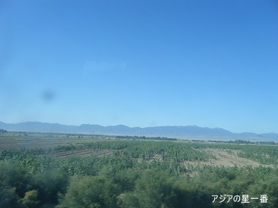 7月28日(木) シルクロードの旅 28日目ウルムチから、トルファンへ移動です。ウルムチ方面は、南郊バスターミナルから、出るので、タクシーを使いました。当日しかチケットは販売しませんが、9時10分にバス停に着き、チケット売り場に並んで、チケットを買ったら、9時20分発です。もう、3分位しかありません。慌てて、走って、バスに乗りました。ウルムチからトルファン行きのバスは、本数が多いようで、座席は満席になっていません。例の如く、アジアの星一番の席には、別の男が座っていましたが、「随便座」とか言っています。勝手に、好きなところに座れ、ってな意味でしょうか?席は、空いているので、言う通りにしました。町を出た辺りは、まだオアシスの続きで、畑が続きます。途中、膨大な、数の風力発電機が、並んでおりました。エネルギー対策、世界中から、石油を買い漁り、他国の海でさえ、俺の海だ! と言うだけでなく、一応、こう言う事もやっているのですね。 岩山も出てきました。砂漠ですね。この辺りに、中国人銘々、「中国の死海」とか言う湖がありました。事前に知らなかったので、写真を撮ることもしませんでした。確かに。塩が吹き出た湖がありました。そう言えば、トルファンは、内陸部にあるのに、海抜が低く、アイディン湖と言う町の南にある湖の海抜は、マイナス154mだそうです。死海が、確かマイナス380m位だったと思いますが、海抜以下ですと、水が流れ出さないので、濃縮されるでしょうね。2時間40分で、トルファンに着きました。22時間の夜行バスとか、毎日、10時間以上もバスに乗るツアーとかに行っているので、2時間40分は、とっても短く、快適でした。はてさて、又、宿探しですが、もう安宿に泊まる事は諦めました。200元前後支払っても良いと、気持ちを切り替えております。そう考えると、気楽ですね。まずバス停隣の、交通賓館、ここは、三ツ星ホテルです。1泊、240元。ネットも使え、エアコンもホットシャワーもあり。他を当たって、ダメだったら、ここに戻って来ることにし、町の中心地方面へ、足を運びます。トルファン、暑いですねー!重慶が、中国の3大極暑地と言われているけど、ここトルファンの方が暑いですぞ!何しろ、「火州」、と呼ばれるほど、暑いようです。ここトルファン。ただ、道路の脇の歩道は、街路樹が植えられて、日陰があります。ですから、ギンギラギンの太陽を、そのまま浴びる事はありません。何軒かのホテルを見ましたが、240元以下はありません。さらに歩いていたら、日本語が見えました。日本人に会った事ありませんが、日本人相手の商売、成り立つのでしょうか?ん? なんだか、おかしな日本語ですぞ?足づごマッサージ? 何を間違えたのでしょうか?たぶん、足つぼマッサージの、間違いでしょうね。「足つぼ → 足づご」 まぁ、似てはいますが、意味が通じませんな。何の検証もしないで、こう言う言葉を掲げる所が中国らしい。探しました。花園賓館、170元。ネットあり、エアコンあり、ホットシャワーありの、3点セット付きです。トルファン1日ツアーが、60元であると歩き方に書いてありました。そこが、青年路と言う、通りにあると、書いてありました。ここです。これ、通りの上が、全て葡萄棚です。今が時期であり、丁度、葡萄も成っています。しかし、探せど、探せど、目指す旅行社はありません。どうも、つぶれたか、オフィスが引越ししたようです。何度も、往復していたら、何かのお店のおばちゃんが、手招きしております。行って見ると、按摩だと言います。マッサージです。まだ、昼だし、夜に来ようかと、値段を聞くと、30元です。おおー、これは、夜、来よう。と、その旨、伝えて出ようとすると、おばちゃん、左手の指で、丸を作り、右手の人差し指をその丸の中に、出し入れして、100元、100元、18歳、18歳、と言っております。な、な、なんじゃー、その手のお店だったか!早々に、退散しました。しかし、100元とは、安いですね。この件で、暑い上に、冷や汗まで掻いて、喉が渇きました。路上の、飲み屋で、一杯飲みましたです。ビールの向こう側に見えるのは、ハミ瓜と、バナナです。夕食は、ご飯類が食べたいなー! と思いましたです。ここ新疆ウイグルの主食は、ナンか、拌面か、牛肉面か、餃子か、そう言ったのが多く、ご飯類が少ないです。それで、ご飯が食べたくなったのであります。ホテルで、聞いて出かけました。マーボー豆腐かけご飯です。うまかったっす!ハミ瓜、食べて見ました。クチャか、どこかで食べたハミ瓜より、ずっとおいしかったです。肉厚で、食べるところが多いですねー! さすが、本場のハミ瓜です。追記 2011年8月28日本日は、御徒町で、飲み会でした。2次会は、立ち飲み。それで、この会合は、「立飲会」、と言う名前が付いております。楽しかったです。明日から、温泉へ行くので、数日は、ブログのアップが出来ません。遅れ遅れなのに、さらに遅