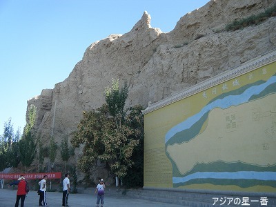 7月29日(金) シルクロードの旅 29日目 その1如何わしい通りの青年路に、目指す旅行社は見つからず、さらに付近を探してみました。1軒だけありましたが、1日ツアーで300元弱。もっと安いはずなので、長距離バス停の方へ行って見ました。旅行社らしき事務所はなく、客引きの運転手は、沢山おります。ここトルファンは、大手の1日ツアーは、なさそうな雰囲気です。念の為、交通賓館へ行って旅行社はないか、聞いて見ましたが、紹介されたのは、個人運転手です。一応、100元と言うのを、90元に負けさせて、ツアーに参加決定です。ここまで、昨日の話。領収書もくれないし、本当に、この朝、ホテルに迎えに来るのか心配しながら待っていましたが、約束の9時の15分も前に、受付より電話があり、迎えに来ているとのこと。慌てて、降りて行きました。車に乗って、10分も走ると、交河故城に着きました。この運転手、ウイグル人ですが、ガイドもしないどころか、何時に帰って来いとも言わず、訳分かりません。取り合えず、入場券を買って、中へ入って行きました。ここ、交河故城とは、名前の通り、二つの河が交わる所に作られた城跡であります。市の西16キロ位の位置のようです。車師前国の都で会ったと言われています。車師前国とはなんぞや? と思いますよね?これは、漢代から北魏にかけて、西域にあった国、これが車師で、トルファン盆地にあったのが、車師前王国と、その北方に、車師後王国があったとのことです。城跡です。こんな場所ですが、ウサギがいました。通路も残っています。南北に、1キロm、東西に300m、の長方形の都市だったようですが、あまり、はっきり分かりません。ですが、広いですね。見にくいですが、真ん中の影の部分が、低くなっている通路です。この都市は、行政区、寺院区、居住区の3つに分かれていたようです。これは、見張り塔の下部です。交河故城を後に、又、10分ほど走ると、カレーズ楽園に着きました。カレーズ楽園とは、カレーが食べられる楽園だと思いましたか?違います!地下水路を利用したオアシスのことを、カレーズと呼ぶようです。因みに、オアシスには、下記の3種があるとの事です。1.地下水を利用したカレーズ(トルファン)2.河川を利用したオアシス(カシュガル、ホータン)3.湧き出る泉を使用したオアシスカレーズへの入り口です。ここへの入場料は、40元ですが、地下水路を見てもしょうがない、かと、入場せず、運転手の、ジーリリ(彼の名前)と話をしていました。運転手をからかっていると、面白いのです。次が蘇公塔です。1779年、トルファン郡王のスレイマンが、父の為に建てたもの。入場料30元。あまり興味もないので、ここも入場はパス。ツアーで、一緒の3人は、江蘇省から来た、父息子と、その従兄弟で、彼らも、興味なく、入場せずでした。土産物売り場には、ウイグル族が演奏する弦楽器のミニチャが売っていました。続く追記 2011年8月31日(水)2泊3日の温泉の旅から帰って来ました。いやー、ゆったりしました。温泉にしか入ってないのに、何故か疲れました。良いですねー! 日本の温泉。引き続き、「シルクロードの旅」、を、アップして行きます。