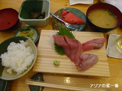 安くて美味しいランチを提供してくれる、三鳥(さんとり)が、旧市街のお堀の北側にあります。後で、説明しますが、夜は、ちと高級な寿司レストランとなります。従いまして、貧乏旅人・アジアの星一番は、ランチしか行けません。これです。「刺身定食」ご飯、味噌汁、刺身、茄子煮、漬物、そしてフルーツ。これだけ付いて、わずか、100バーツ=340円位です。おまけに、ライスはお代わり自由。ここは行きますよね。あの「ごはん亭」の、不味くて量の少ない、カツ丼が、50バーツです。それに比べたら、ここの刺身定食は、最高です。比較になりませぬ。この刺身の新鮮さを見て下さい。運もあるらしいですよ。一匹の魚をさばくので、美味しい所と、筋が含まれていたりと、その時によって違うと隣に座った常連さんが言っていました。お店では、きっと、不公平がないようにしていると思うのですが、確かに多少の差は出て来るでしょうね。この真ん中の3切れなんぞは、絶品の刺身です。にぎりセットもランチにあります。130バーツです。アジアの星一番の場合、にぎりも食べたいのですが、ご飯お代わり自由の刺身定食に目が行ってしまいます。定休日は、なんと、水曜、木曜、金曜、と週に3日です。これは、ご主人が、鮮魚を仕入れる為に、タイの南の方まで出かける為、休みにするのだそうです。そして、ランチは、土曜、日曜、月曜、火曜とあります。月曜、火曜は、焼き魚定食も準備されるようです。まだ食べた事ないので、今度は、火曜日に行って見ようと思います。お店の中には、大きなお魚さんを抱えた人の写真があります。お店に飾ってあるのですから、撮影自由かと撮らせて貰いました。ご主人なのでしょうね。夜のお値段も参考までに、撮影しました。ちょっと高級ですよね。外食は、30バーツから40バーツで済まし、最高額でも、タイスキ食べ放題158バーツで、喜んでいる、アジアの星一番には、トンカツ、ザルそばが、250バーツは高すぎます。この三鳥の前に、「ぐでんぐでん」と言う、赤ちょうちんの流行っているお店があったのですが、今は、別の店になっていました。この三鳥の、もう一本、東側の狭い道路に、「ノラ猫亭」と言う居酒屋もあったのですが、もう、疾うの昔に別の店になっています。移り変わりは早いですね。2010年7月ですから、5年半前ですが、ノラ猫亭、あったのです。そのブログを紹介します。下記をクリックして見て下さい。日本食レストラン ノラ猫亭アジアの星一番が書いている、「チェンマイに佇む男達」の小説にここ、「ノラ猫亭」、も、モデルにして出て来るのですな。このお店に、「ねぇ」と言う名前の、「ねぇおねぇさん」がいたのです。「ねぇお姉さん」と書くと分かり易いですが、ややこしい名前でした。