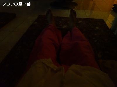 久しぶりにマッサージに行きました。何故かと言うと、ちょっとここの所、体調が思わしくないから、試しに行って見ました。12月は、ずっと1ヶ月近く、体調が良く、薬を飲み忘れても、飲み忘れに気が付かない程であったのです。しかしながら、生活は全く変えていないのに、夕方位から、頭がボォーっとして、クラッとする感じになるのです。頭がボォーっとするのは、生まれつきじゃろ! と言うなかれ、そのボォーっと、ボォーが違うのですよ。分からんでしょうな、うつ病患者の悩み。宿から、そんなに遠くない小さなマッサージ屋に行きました。怪しい所ではありませんよ。カメラのフラッシュが壊れていて、このような写真になってしまうのです。もう一週間もすると、日本から新しいカメラが届きます。このマッサージ屋さん、良かったですなー。とても丁寧です。左足25分、右足20分、背中から肩30分、合計 ん? 1時間15分。えー! 15分もサービスして揉んで貰いましたぞ!肩から首、のマッサージが、気持よくて、「サバイ、サバイ!」、を連発しておりました。頭のボォーも、少し良くなりました。久しぶりのマッサージなのですが、アジアの星一番は、大のマッサージ好きなのですね。ずっとブログを読んで下さる方は、ご存じでしょうが、東にマッサージ屋があると聞けば東へ行き、西にマッサージ屋があると聞けば、東へ行き、あちこちのマッサージを体験しています。聞きたくないでしょうが、ざっと掲げて見ましょう。シンガポール、マレーシア(ジョホールバル、クアラルンプール、ペナンなど)台湾、韓国(垢すり)中国は数えきれませんが、挙げます。 東莞、広州、大亜湾、蘇州、上海、杭州、北京、天津、桂林、瀋陽、重慶、 成都、ウルムチ、トルファン、蘭州、フフホト(内モンゴル)、などなど。バハレーン、アレクサンドリア(エジプト)、トルコ(マルマリス、イスタンブール)ペルー(マチュピチュ)、ヨルダンなどなど。数え上げるのが面倒なほど、行っています。一時期は、マッサージ評論家になるか? と思ったほどです。(思っただけですが・・・)色々と行きましたが、マッサージの、2大大国は、タイと中国ですね。この2大大国に勝る、国のマッサージの経験はありませぬ。アジアの星一番の経験と感覚から言いますと、 * 全身マッサージは、タイ。 * 足のマッサージは、中国。 と言った所でしょうか?中国の全身も良いですけどね。中国の良い所は、顔の所に穴が開いていて、うつ伏せになっても、顔が苦しくない所です。タイマッサージの唯一の改造必要項目であります。そんな事で、久しぶりのマッサージ、時間外でも揉んでくれたので、チップあげない派閥代表のアジアの星一番ですが、気前よく、20バーツあげました。因みに、ここのマッサージ費用、160バーツ=550円位です。赤坂のタイマッサージならば、1万円ですな。ですから、ここは安い!赤坂へ2回行くより、1ヵ月間毎夜行っても、チェンマイの方が安い。