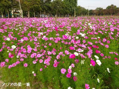 コスモスが美しく咲いている、とチェンマイに住む知人が、facebookにアップしました。場所は、チェンマイ大学構内だそうです。早速、行って見ました。コスモスは、か細く可憐で、控えめで美しく、あの時の、あそこの、あの人のイメージなのですねー! (その人誰じゃ?)如何でしょうか? 美しいですよねー!このコスモス、外来種なのですね。原産地はメキシコらしいです。コスモスと言えば、か細く控えめで美しく、しかし芯の強い、あの人のような、日本的女性のイメージですから、日本古来の花だと思っていました。(だから、あの人って、誰じゃ?)秋風が吹く、ちと寂しいような散歩道、山道で出会う、コスモス、心が和らぎますな。それが、暑い日々が続くメキシコ、お尻のでかい女性のイメージの国からやって来たとは思えません。日本に来たのは、明治時代らしいです。とすると、江戸時代の人は、コスモスを見た事がなかったのですねー。そうなんだ、知らなかった。「こすもす」、と入力して、変換しても、「コスモス」としか出ません。コスモス=秋桜、と思っていましたが、どうして、秋桜が出て来ないの? と不思議に思いました。それは、外来種だからなのです。「秋桜」は、明治の頃から、当て字で使われていたそうですが、一般的ではなかったそうです。それが、さだまさし作詞作曲、山口百恵が歌った「秋桜」で一気に一般名詞として知れ渡ったそうです。 唄の力、凄いですねー。もう一度、見ましょう。コスモス=秋桜、です。こんな花も咲いていました。こんな実もなっていました。それにしても、あの人は今、どこで、何をしているのでしょうか?